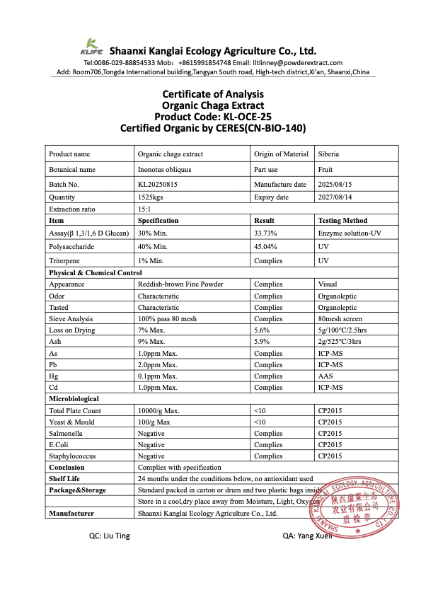 The typical daily intake of Chaga extract powder is 500–1500 mg per day. The most appropriate amount can vary depending on factors such as your age, overall health, and wellness goals.