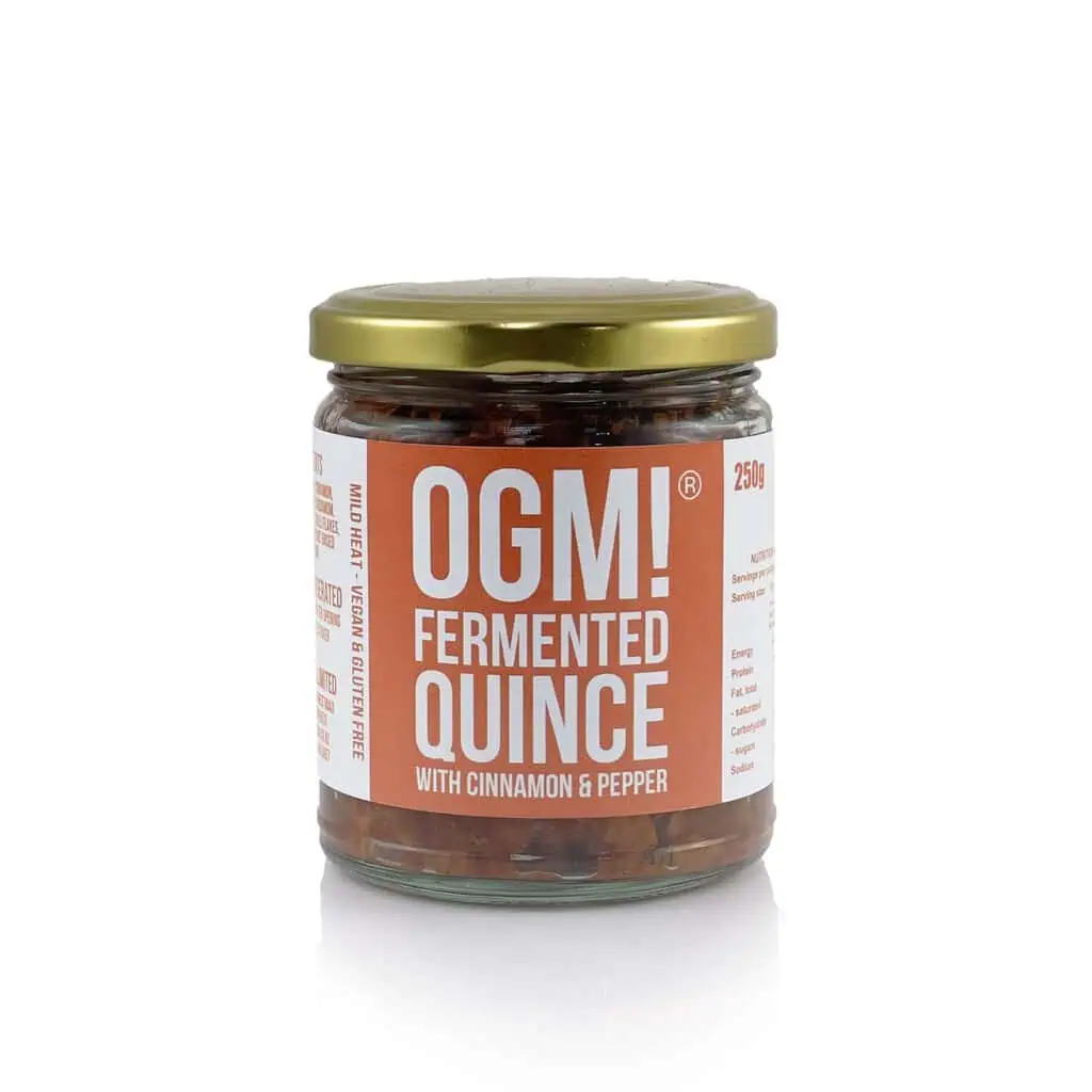 - Hot Fermented Quince: A new taste creation from our fermentation kitchen in Ohau. A ferment that brings together the incredibly aromatic Quince with the exotic flavour and health properties of cinnamon, white pepper & a dash of cardamom. Works well with Savoury (think lamb or venison) or sweet dishes. Try it on hokey Pokey ice cream!